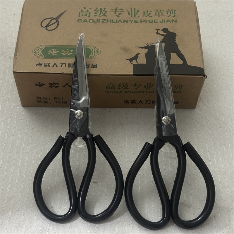老实人黑柄高级专业皮革剪P01裸包装