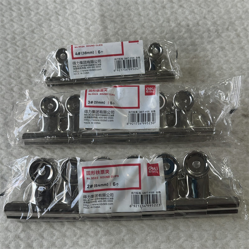 得力圆形铁票夹2#3#4#