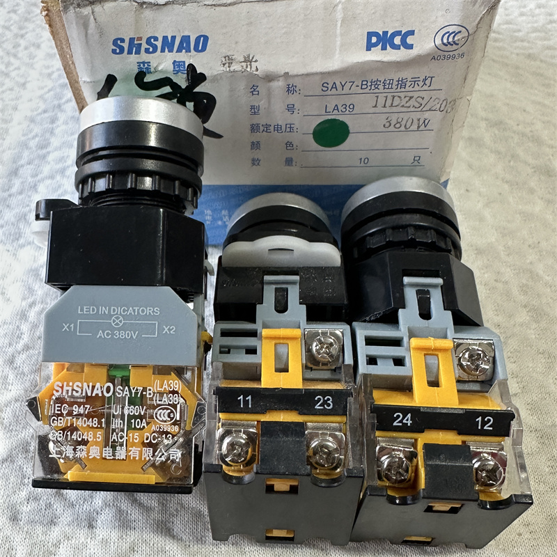 森奥SAY7-B按钮指示灯LA3911DZS/203 380V 自锁 绿